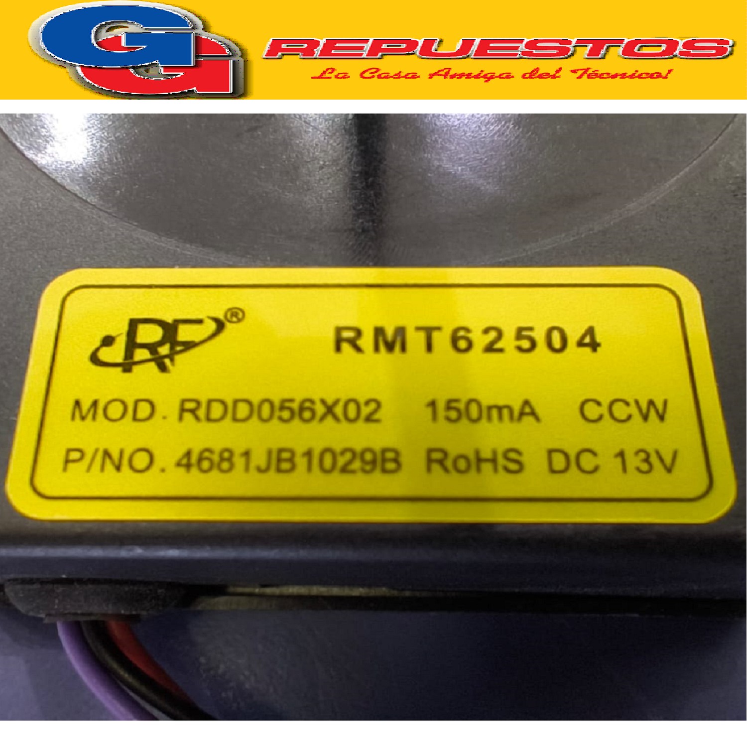 FORZADOR HELADERA NO FROST 13V 3 CABLES LG GCL GCL207WTQ-GCL 207WVQ-GCP207WTQ-GRP228ZGB (ORIGINAL de 3 CONTACTOS - LARGO EJE 60mm) NOTA: Voltage 13V 1500RPM FORZADOR DEL MOTOR PARA HEL.No Frost Cod.Origen: 4681JB1027B-4681JB1029L-4681JB1017E (LG) 13V 135mA 1.15KRPM /GCL207BLKV-GRG277STW-GRP227ZGB-GRP257STA-GRP257SVK 4681JB1029B-4681JB1029K (LG) MOTOR FAN 13V FRIDGE LG Produttore: DONGSEO Electronics (A111127I9I) 1601O5D Mod. RDO056X01 320mA CCW 13Vdc