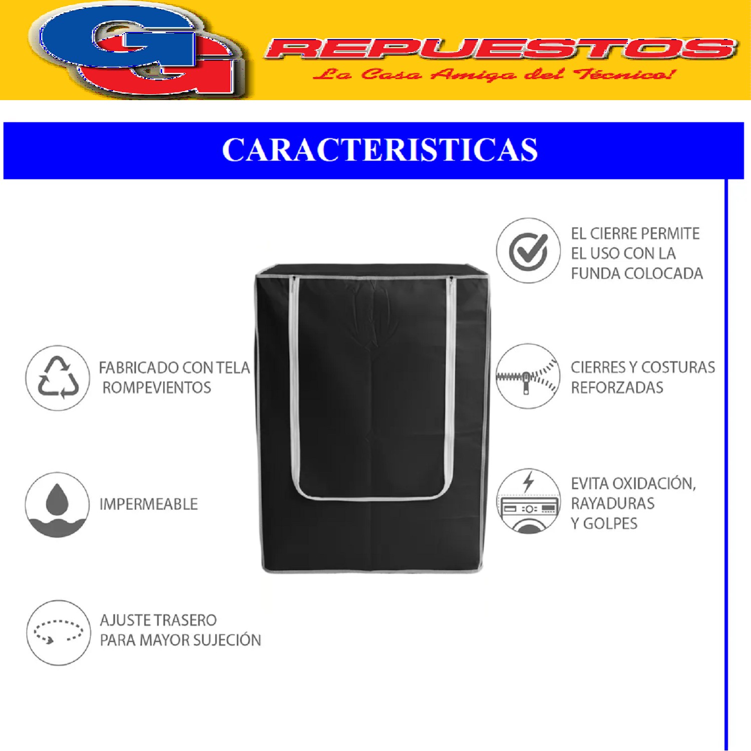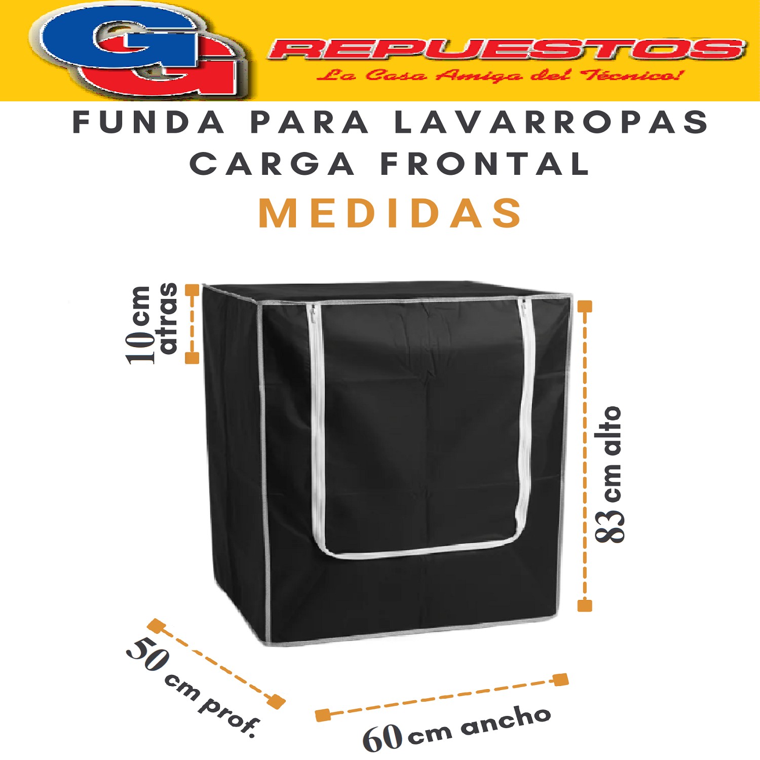 FUNDA CHICA PARA LAVARROPAS CARGA FRONTAL 60X50X83CM NEGRA