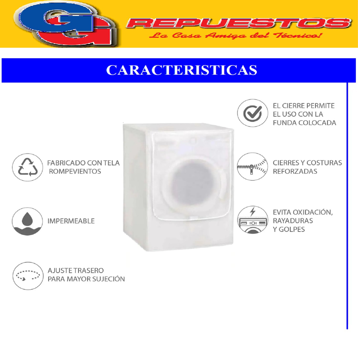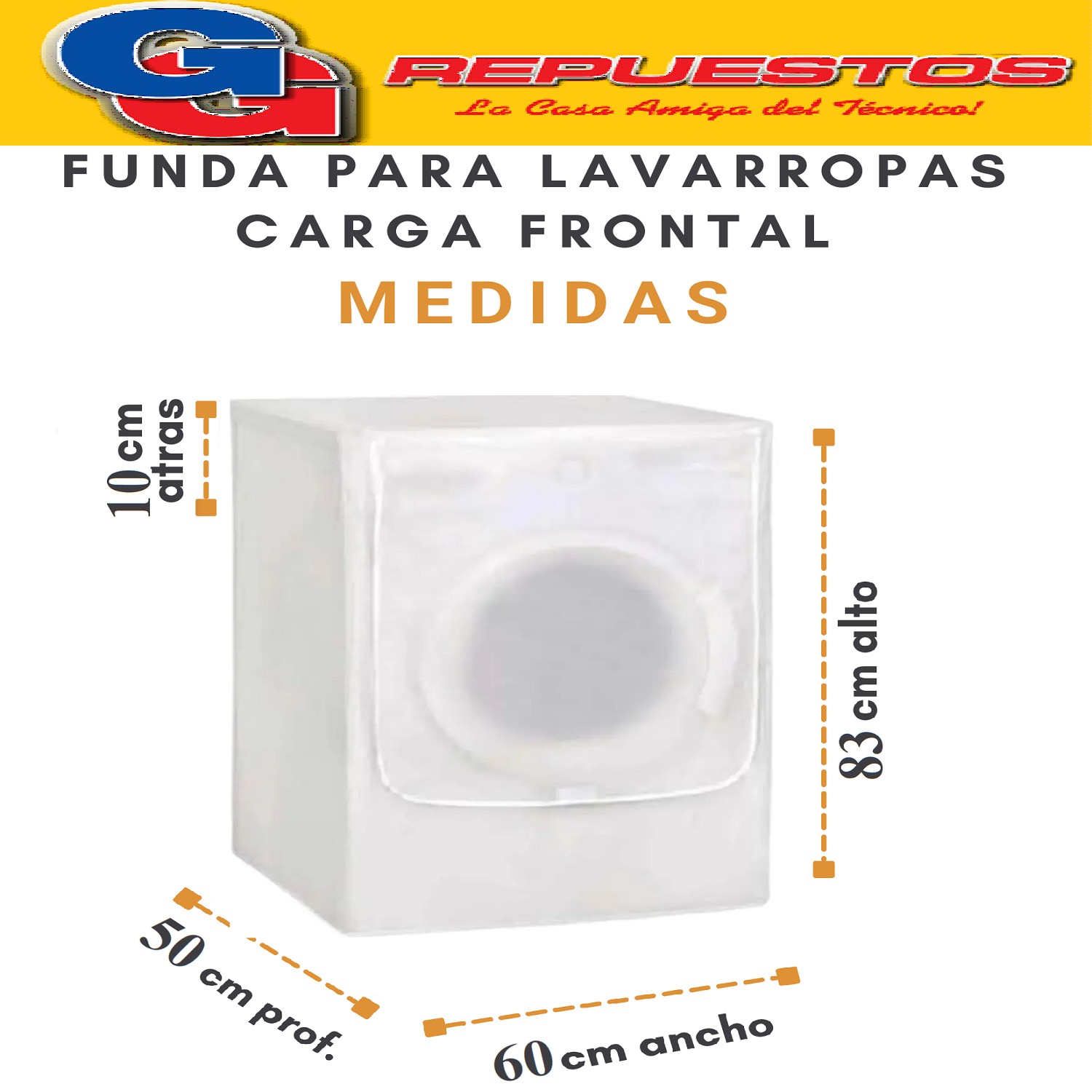 FUNDA CHICA PARA LAVARROPAS CARGA FRONTAL 60X50X83CM BLANCA