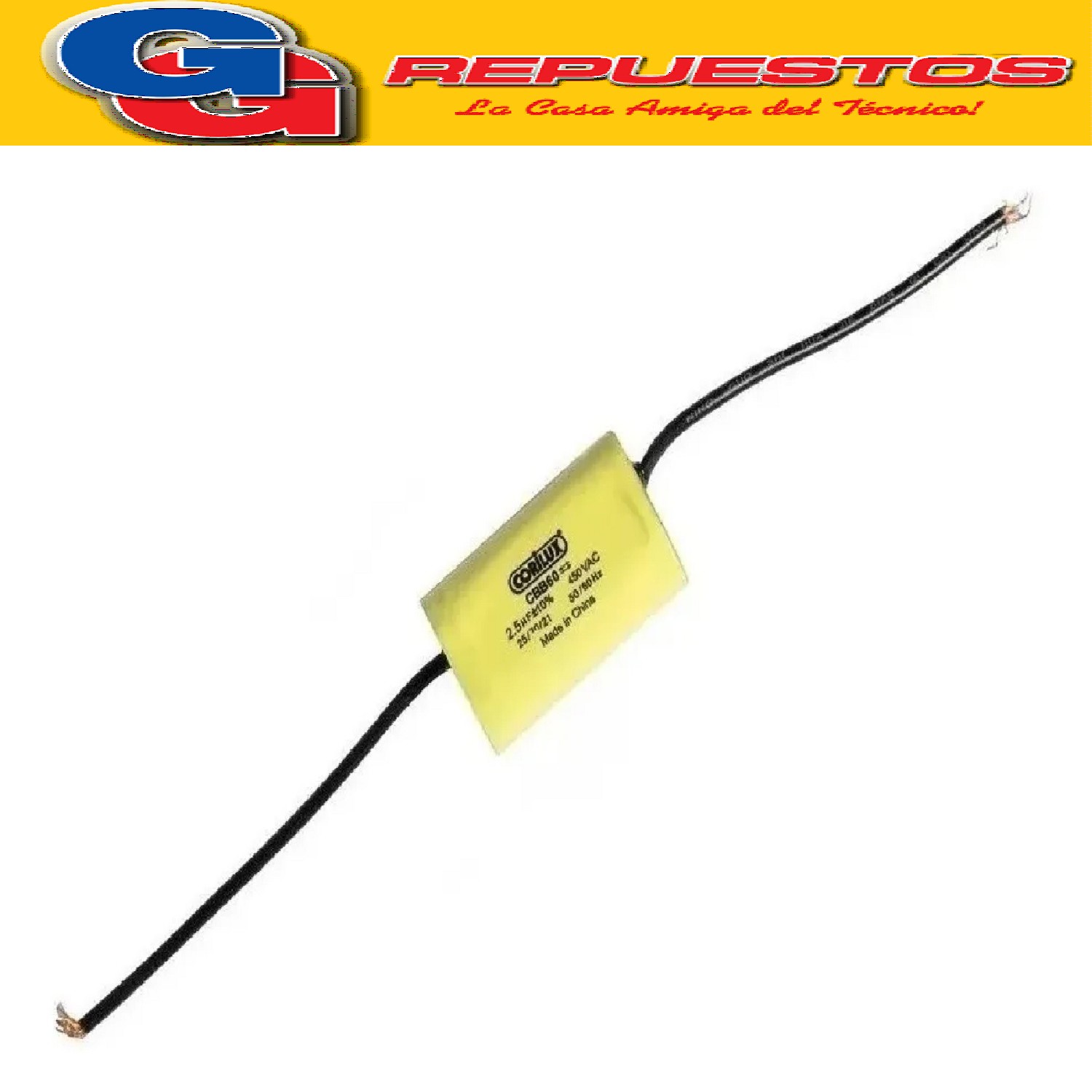 CAPACITOR 2.5uF X 450V CARAMELO CON CABLE